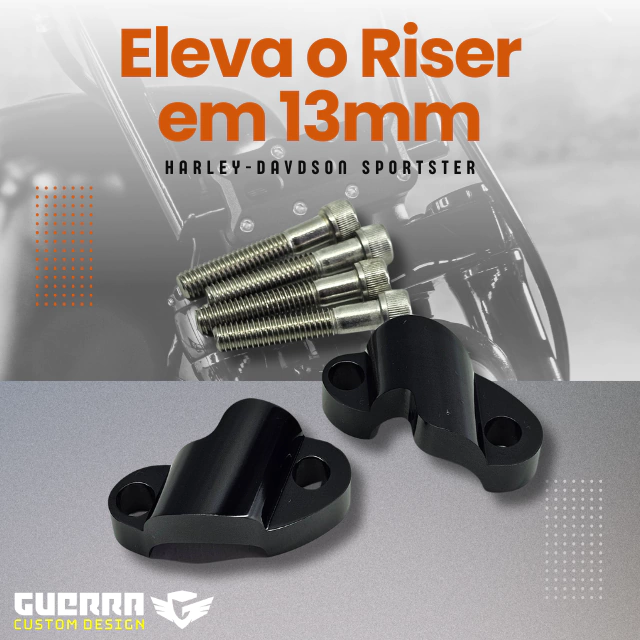 Esse kit foi desenvolvido para elevar o riser do guidão em 1/2 polegada (aprox. 12,7 mm), proporcionando mais espaço livre entre o guidão e as porcas superiores da suspensão, sem perder o visual limpo e agressivo da frente da moto.