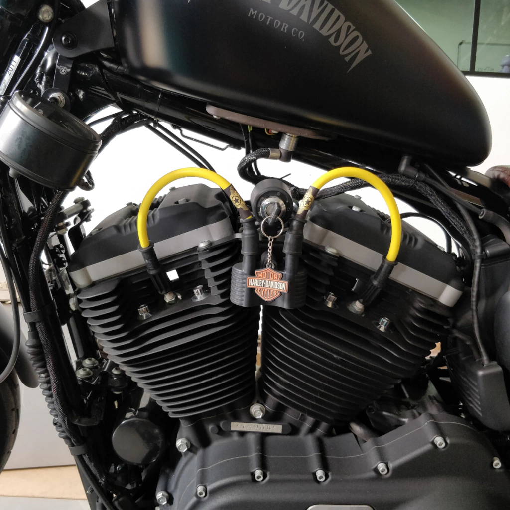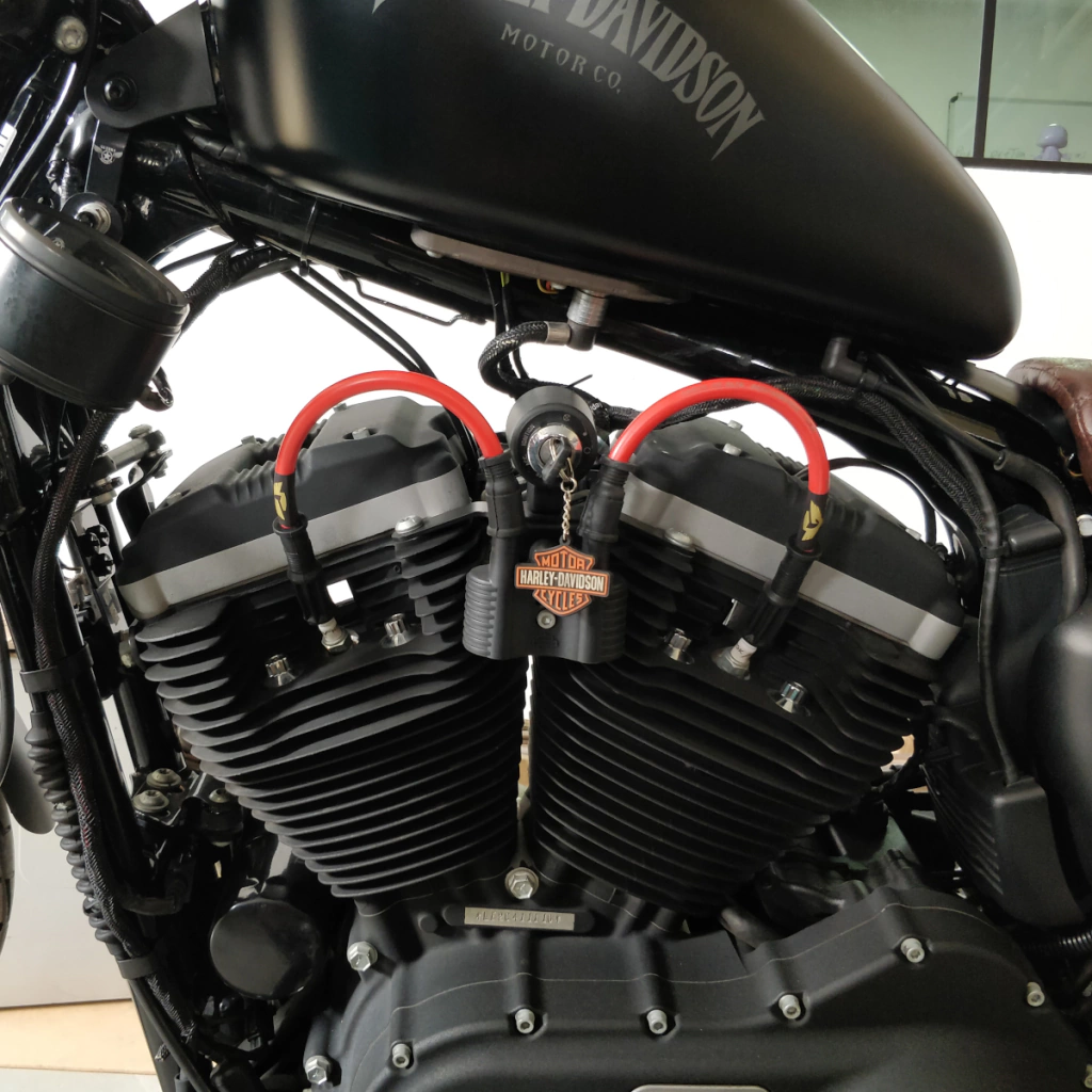 Dê um toque de estilo e desempenho à sua Harley Davidson Sportster com o Realocador de Bobina e Ignição + Cabos de Velas Guerra Custom Design.