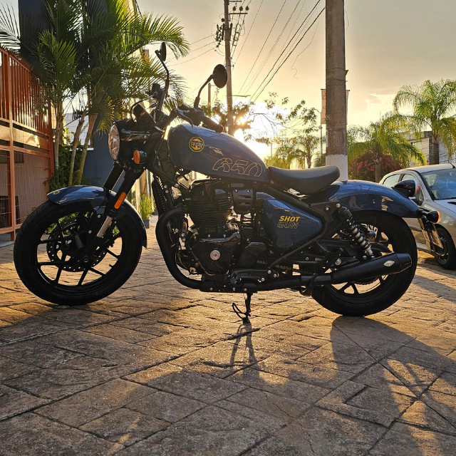 Desenvolvido exclusivamente para os modelos Royal Enfield Super Meteor 650 e Shotgun 650, o rebaixador de suspensão da Guerra Custom Design é ideal para quem busca um visual mais agressivo e maior controle da moto no dia a dia.